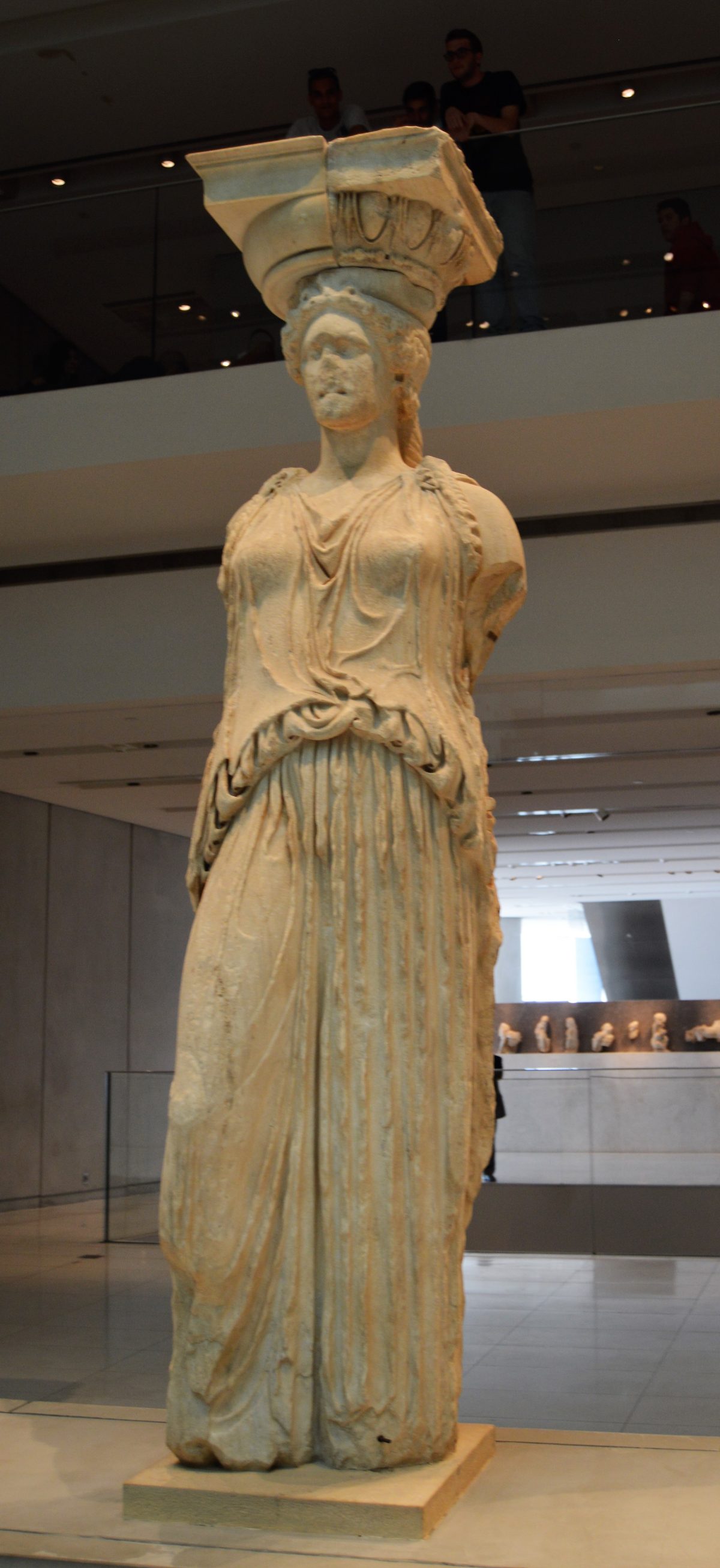 Original caryatid on display at the Acropolis Museum